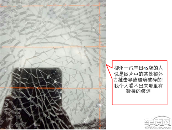 2016年12月8号提车,过了一天(12月10日)发现后挡风玻璃破裂。打电话给柳州一汽丰田4S店,说让把车开到4S店检查。到4S店后,维修人员看了眼没经过任何检测,直接拒赔!理由是外力碰撞导致!真让人无语!