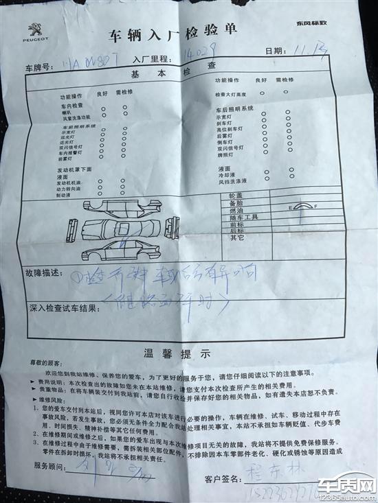 投诉编号:【173060】 投诉时间:2016-12-16 09:53 投诉品牌:东风标致 投诉车系:标致408 投诉车型:2016款 1.2T 手动 豪华型