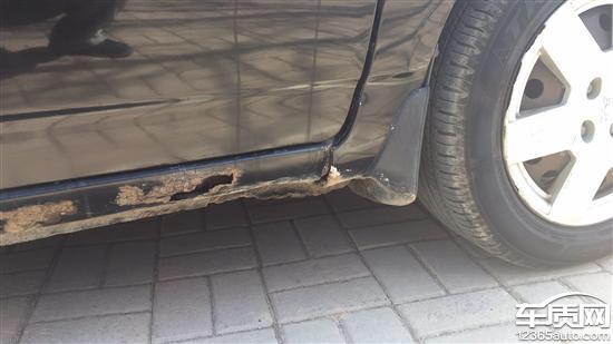 比亚迪F3左右侧裙从里到外锈蚀腐烂2017-03-16车型:2014款 1.5L 手动 舒适型