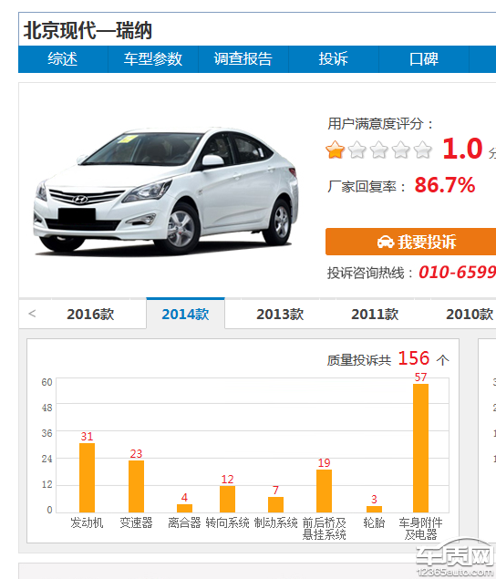 投诉编号:【190450】 投诉时间:2017-04-03 15:26 投诉品牌:北京现代 投诉车系:瑞纳 投诉车型:2014款 1.4L 自动 智能型GLS 三厢