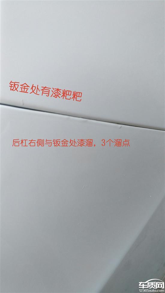 后保险杠重新喷漆且多处灰疙瘩,与钣金色差明显!其它小问题:离合阵脚、机盖后备箱关闭费劲、左右钣金缝隙不对称明显等。