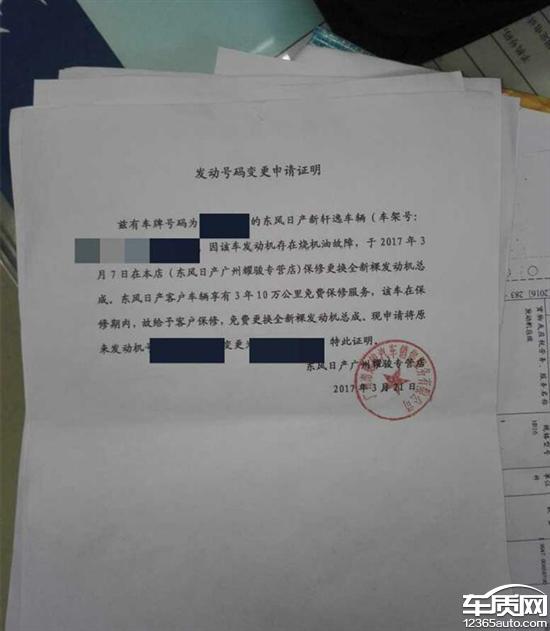 东风日产轩逸发动机烧机油 要求更换发动机2017-04-18车型:2014款 1.6L XV CVT 尊享版