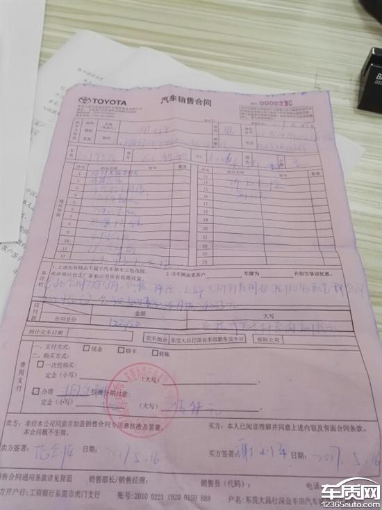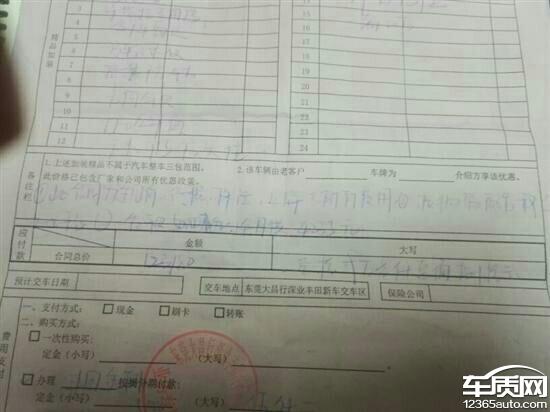 本来谈好价格是123180落地价,含税,贷款手续费,保险,上牌,当时4s店承诺1年免息,贷款5万,但是后来发现跟本没有免息月供4235乘以12个月都是50820,多了820元利息费。如果把利息算上去就变成了134000,根本不是123180跟购销合同不一样。跟之前跟4s理论后来不理睬。