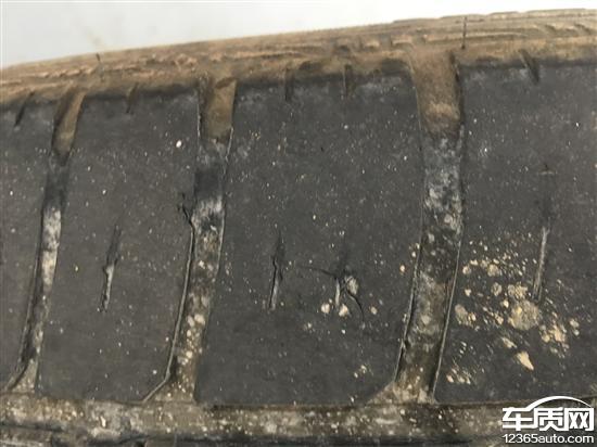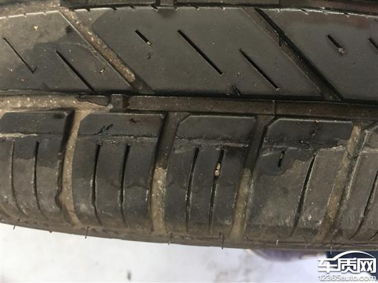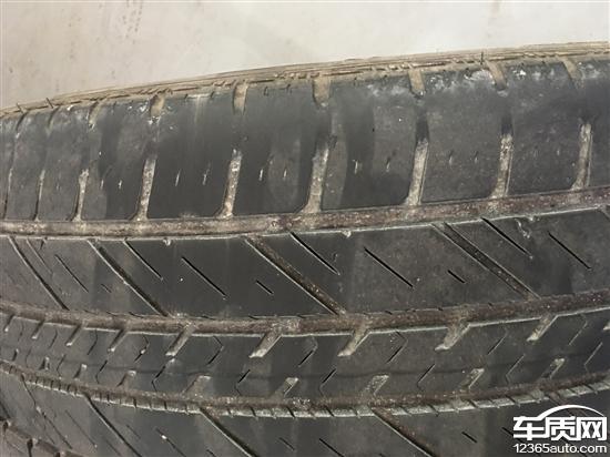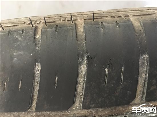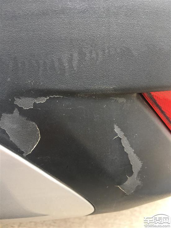 两天前胎内测均磨平,花纹都磨没有了,而且有严重起皮现象,存在安全隐患,要求更换新胎;车尾后护杠黑色塑料部分起皮,要求更换。