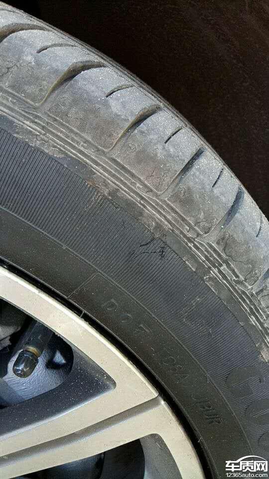 东风标致408固特异轮胎出现严重开裂。车子很少开,基本上都是停在学校里不动,就每年寒暑假来回湖北!