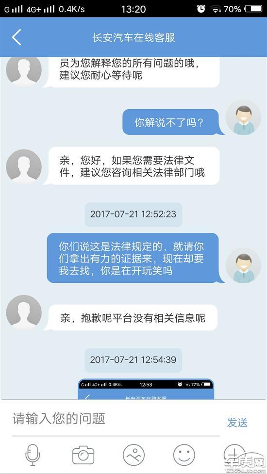 投诉编号:【208398】 投诉时间:2017-07-22 13:56 投诉品牌:长安汽车 投诉车系:悦翔V7 投诉车型:2015款 1.6L 手动 乐享型 国V