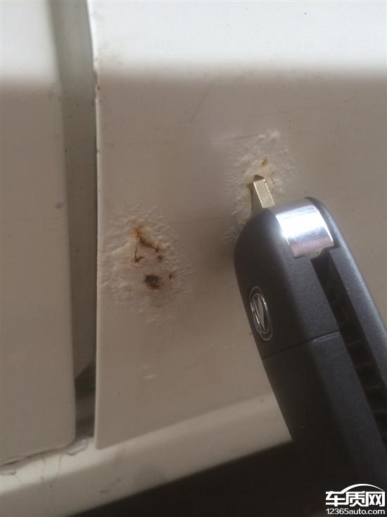 后车轮轮眉两侧起锈泡,右侧轮眉厂家修复一次没解决问题,两侧前门起锈泡,右侧前门已经锈穿。厂家回复前门不在处理范围,车顶装饰条底部生锈。厂家也回复不在处理范围,车没出过事故,没磕碰,都是从里往外起锈,厂家都不管。