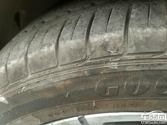 上周发现轮胎开始开始慢撒气,当时也没注意,充点气就走了,过了一个周末,今早开车轮胎已经扁了,经过仔细查看轮胎竟然裂了一个口子,并且在侧面,周围也没有剐蹭的痕迹。一直上下班开车,刚查了一下标致论坛,标致408的轮胎质量是个普遍问题,有的说保修半年,有的说固特异保修三年,也不知道找哪个部门解决问题。