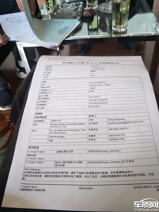 投诉编号:【231330】 投诉时间:2017-11-20 20:19 投诉品牌:北京奔驰 投诉车系:奔驰GLC 投诉车型:2017款 260 4MATIC 动感型