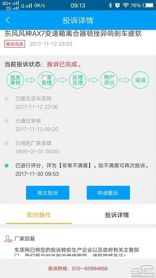 投诉编号:【234469】 投诉时间:2017-12-02 09:15 投诉品牌:东风乘用车 投诉车系:风神AX7 投诉车型:2016款 1.4T 手动 智尚型