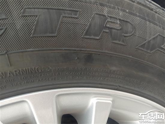 新车行驶4000公里时轮胎外侧出现裂纹而且裂纹不断延长。