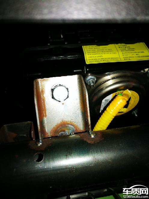 中控骨架、转向柱及安全气囊周边生锈严重,甚至有锈粉脱落,有重大安全隐患。购车后没多久已出现此问题,当时只检查了座椅底部及转向柱,并在4S店作了防锈处理,没想到还是一样锈。当时没注意到中控骨架的生锈程度竟如此严重,锈粉已开始掉落在线路上面,还有安全气囊也在锈,时间长了,担心会导致腐蚀线路引起短路、安全气囊功能失效,后果将十分严重。