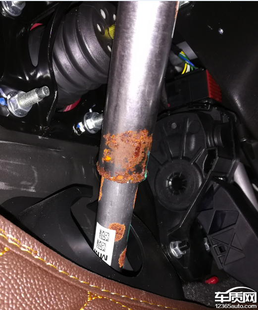 转向柱及仪表台上方支架生锈,座椅下面也生锈别人的有仪表生锈的,我的还没拆开看,我这是12月中旬买的新车,车牌都还没上呢。