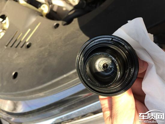 1300km测机油在标尺下线,2300km测明显增多,机油箱改有白色乳化物。