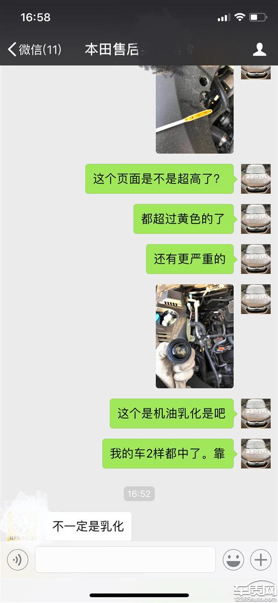 信任本田品牌,便于2017年11月13日购买了冠道240顶配。提车后用零牌开了2千公里后,由于上海牌照没拍到,所以只能停在小区里,每天开几圈。1月20日看到网上有车主朋友说机油问题,便去检查了一下,一查吓一跳,机油增加和乳化我的车都碰上了。我的可是新车啊,心疼加愤怒。联系售后,一再推脱,说不是这个问题。也无语了。希望厂家能完美解决。不能解决的话就按照我过三包条例退车。发动机问题严重影响生命安全,后患无穷,不是延保能解决的。希望有关部门能为我们消费者做主,公平处理。