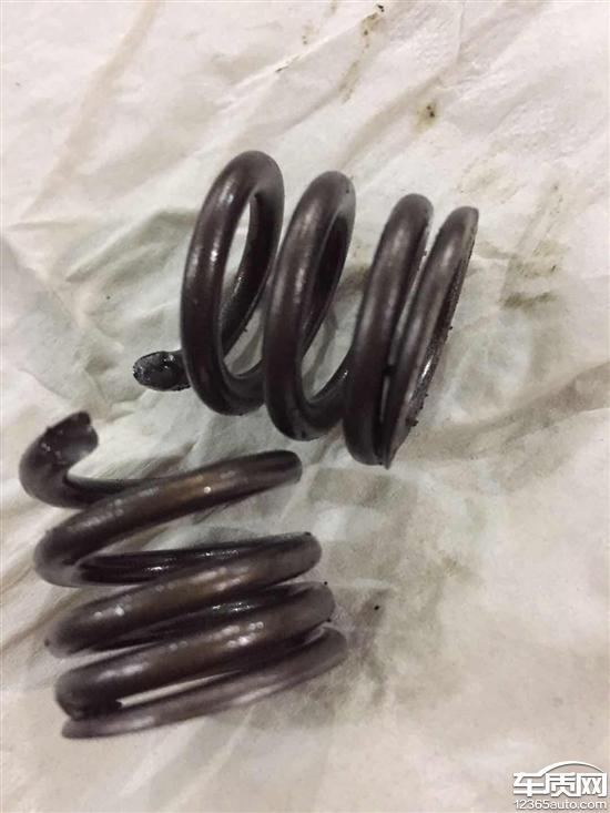 2018年2月22日上午送武汉上海大众4S店检修,发现1号气缸进气弹簧折断,并导致气门、气门导管损坏变形,1号活塞受损。