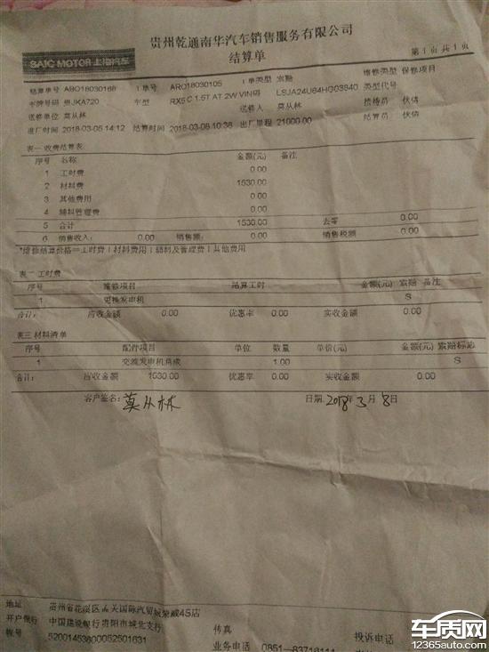 投诉编号:【259588】 投诉时间:2018-03-11 01:09 投诉品牌:上汽集团 投诉车系:荣威RX5 投诉车型:2016款 1.5T 自动 两驱 互联网智享版