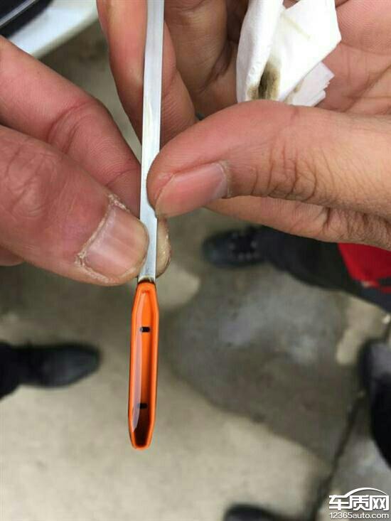 机油超出标尺最高限1.5厘米。