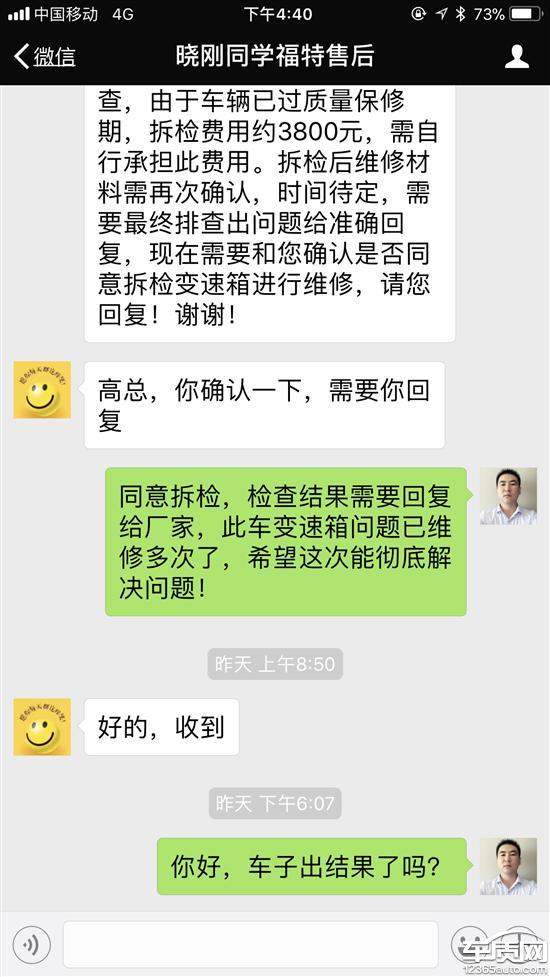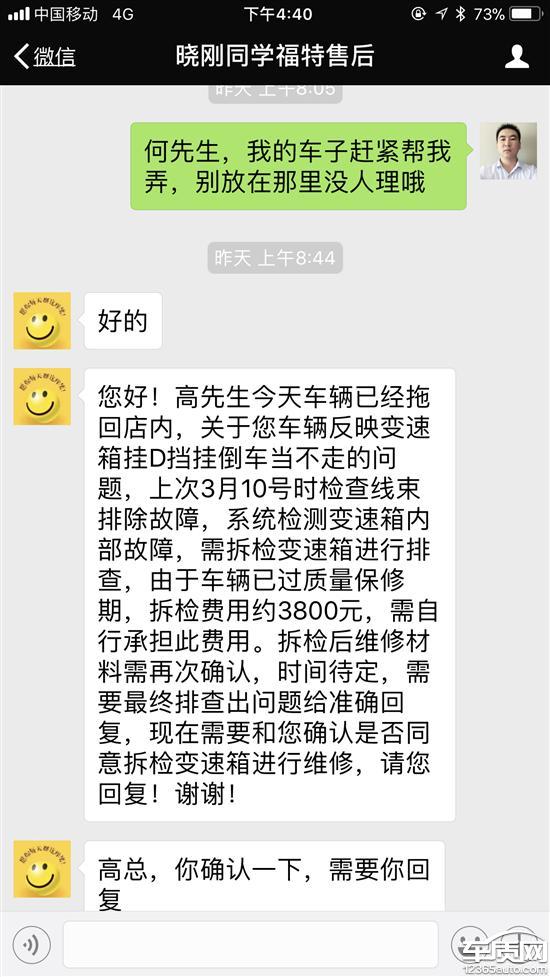 长安福特翼虎变速箱故障导致无法行驶,现已在深圳4S店检修,截止目前没有得到厂家的明确回复!