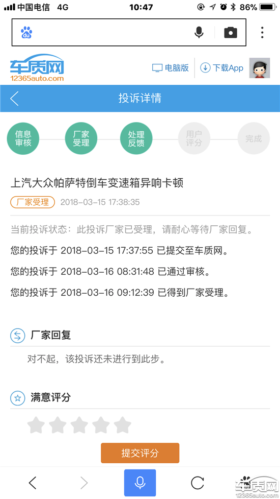 投诉编号:【264066】 投诉时间:2018-03-22 10:56 投诉品牌:上汽大众 投诉车系:帕萨特 投诉车型:2011款 新PASSAT 1.8TSI DSG 尊荣版
