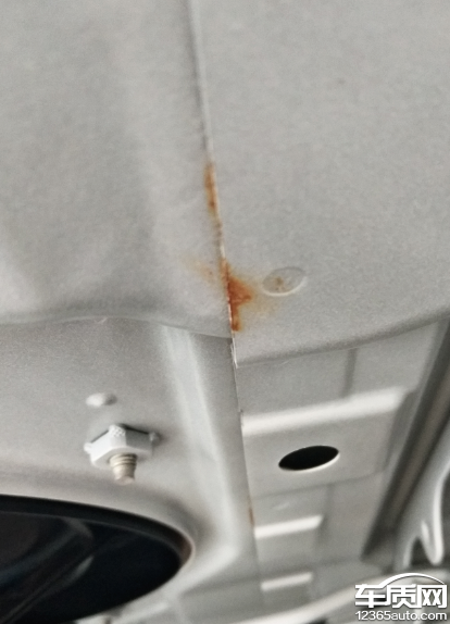 后备箱盖内侧顶部有几处生锈的地方,时间长的话影响车的行驶安全性