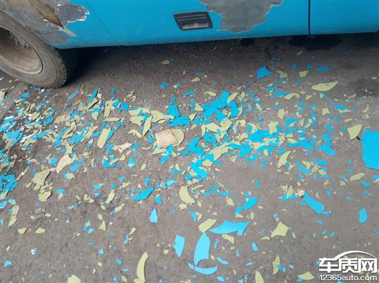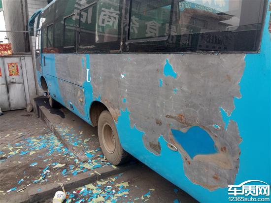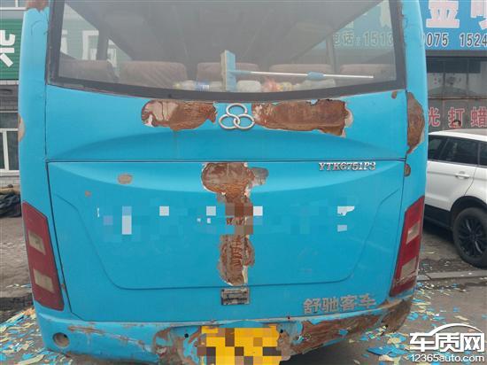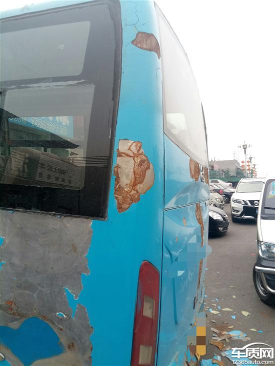 舒池客车车身漆面开裂脱落导致生锈严重,已经是大面积脱落导致该车已经无法运营。