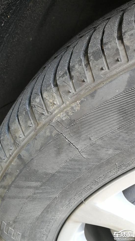 左侧前胎开裂严重,而且是好几个部位,具体什么时候出现的都不清楚,最近才发现。4S店说轮胎开裂不属于质量问题的。