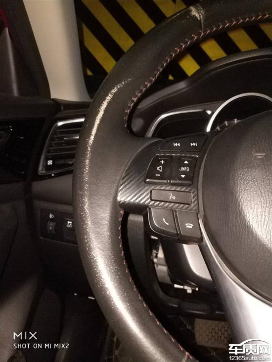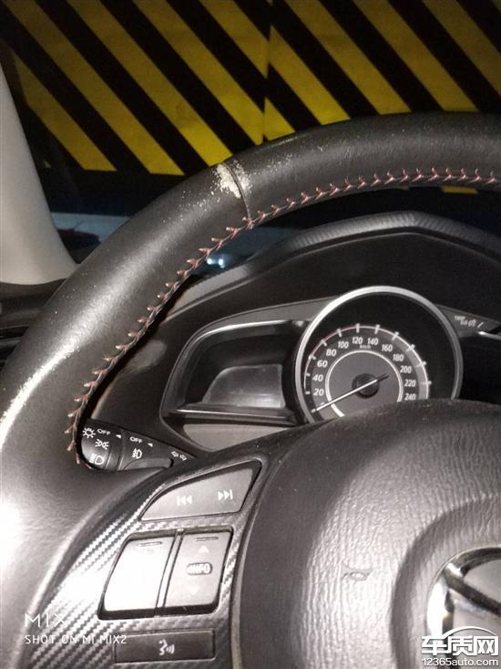 2016年3月15日挂牌,2017年3月,发现方向盘掉色,去4S店索赔,店内告知是顾客正常磨损,不给索赔。此处没有一点磨烂的痕迹,方向盘至今表面光滑,但是就是掉色,上面成白色(如图)。真皮方向盘没有磨损痕迹,就是掉色。现在发现掉色越来越严重,4S告知还是正常磨损,这明显是质量问题。真皮方向盘表面光滑,却发生掉色现象,正常吗?