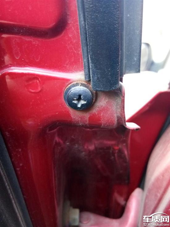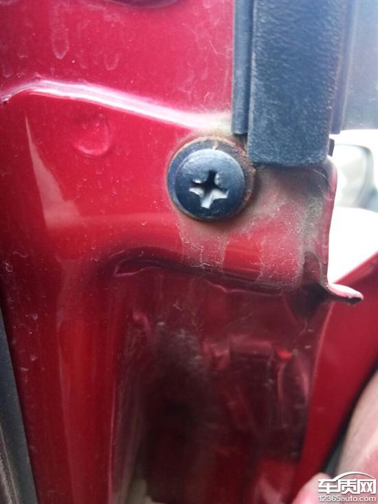 1、左后车门螺丝生锈严重; 2、玻璃水出口堵塞。
