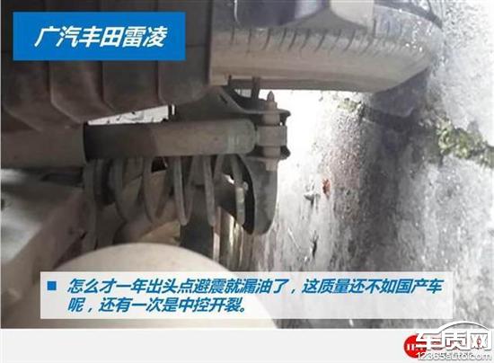 广汽丰田雷凌后减震器漏油3年更换六次2018-07-25车型:2014款 1.8GS CVT 精英版