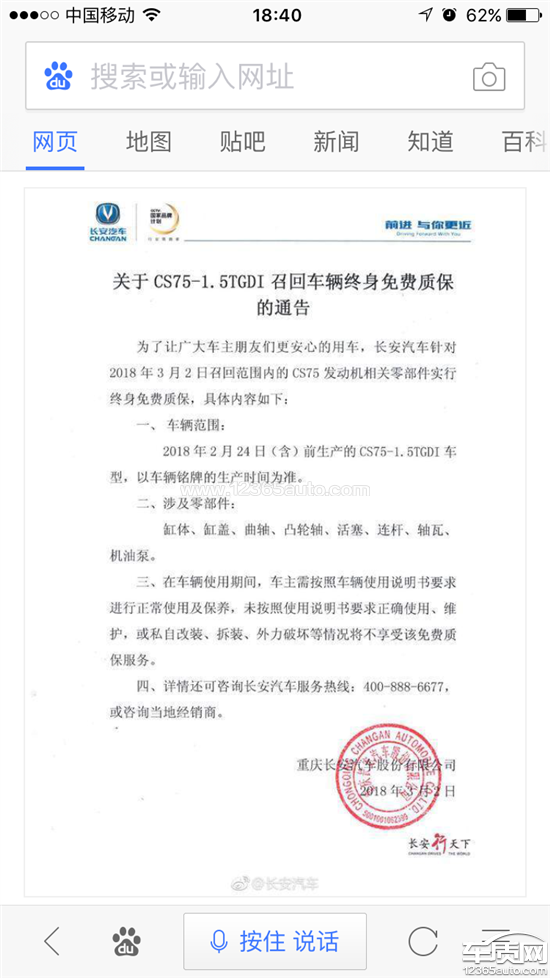 投诉编号:【306136】 投诉时间:2018-09-16 15:11 投诉品牌:长安汽车 投诉车系:长安CS75 投诉车型:2017款 1.5T 自动 锋悦型 尚酷版
