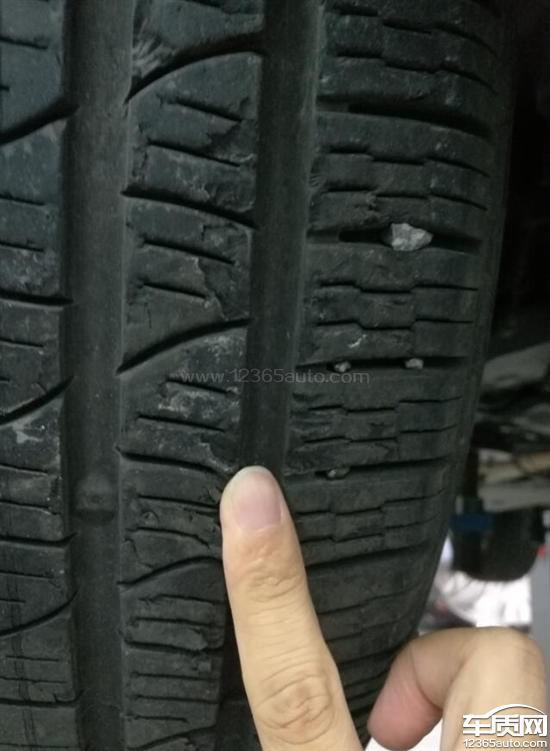 初次发现起皮是在15000多公里做二次保养的时候,当时在4S店反馈,售后技师说小范围起皮是正常现象,因为车总会走一些沙石路段,我也认同这一点,所以就没有要求进行索赔,这次发现前面两轮胎严重起皮,找4S店表示过了30天1000公里没办法索赔,通过照片可以看到明显是轮胎质量问题,强烈要求厂家召回更换质量有问题轮胎。(我前后轮胎都是原厂轮胎,没有更换过,前轮胎起皮严重,后轮胎很新,通过这点也能证明我没有去越野,后轮胎螺丝没有拧痕,证明没有拆过轮胎)。