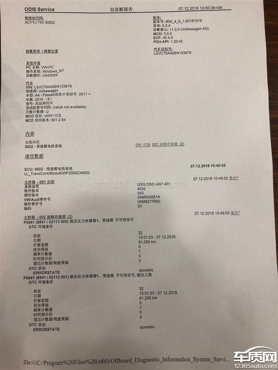 投诉编号:【326718】 投诉时间:2018-12-07 15:59 投诉品牌:上汽大众 投诉车系:帕萨特 投诉车型:2014款 1.8TSI DSG御尊版