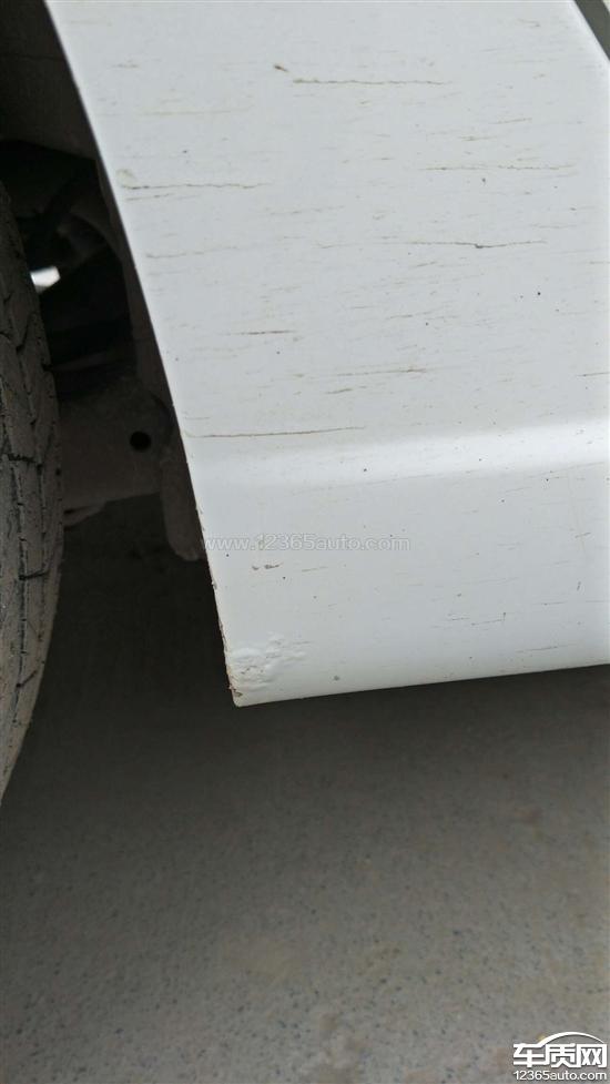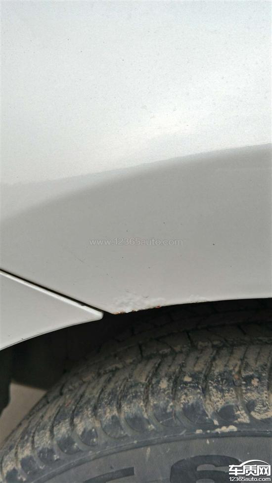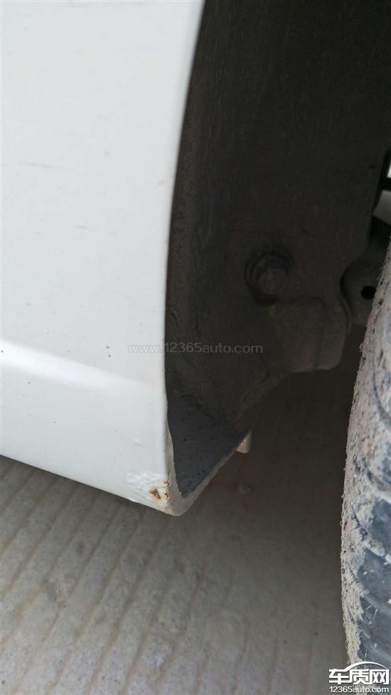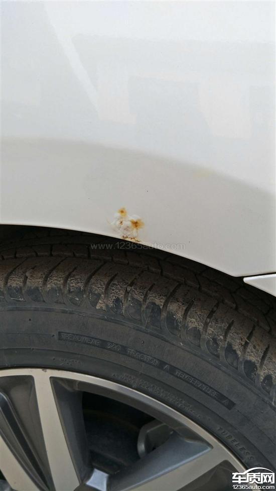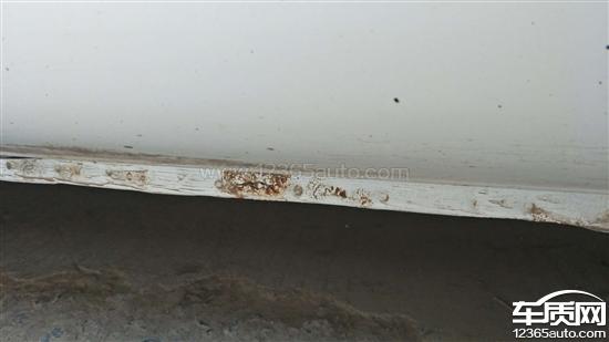 后轮两侧翼子板轮眉处由里向外起锈泡,以及两侧车裙和车门下方边缘均有不同程度的生锈腐蚀,车辆存在严重质量缺陷。