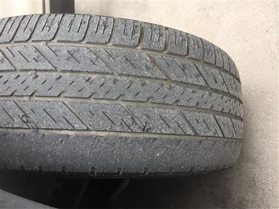 前段时间发现汽车行驶噪音大,检查了一下发现前轮内侧吃胎严重,而且轮胎面也有不同程度的脱皮现象。