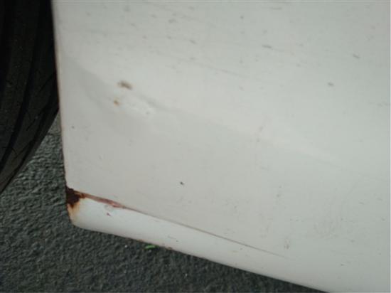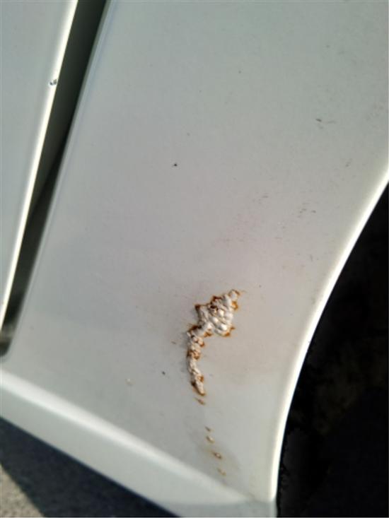 车身主驾后门底部与轮胎前面约6公分左右出现生锈,整个漆都鼓起来了,在后备箱,副驾驶这边也出现了不同程度的生锈……