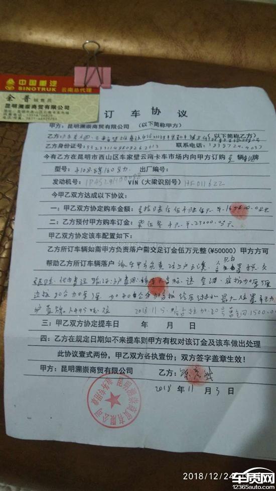 投诉编号:【332387】 投诉时间:2018-12-24 19:08 投诉品牌:一汽 投诉车系:豪曼H3 投诉车型:轻型自卸货车