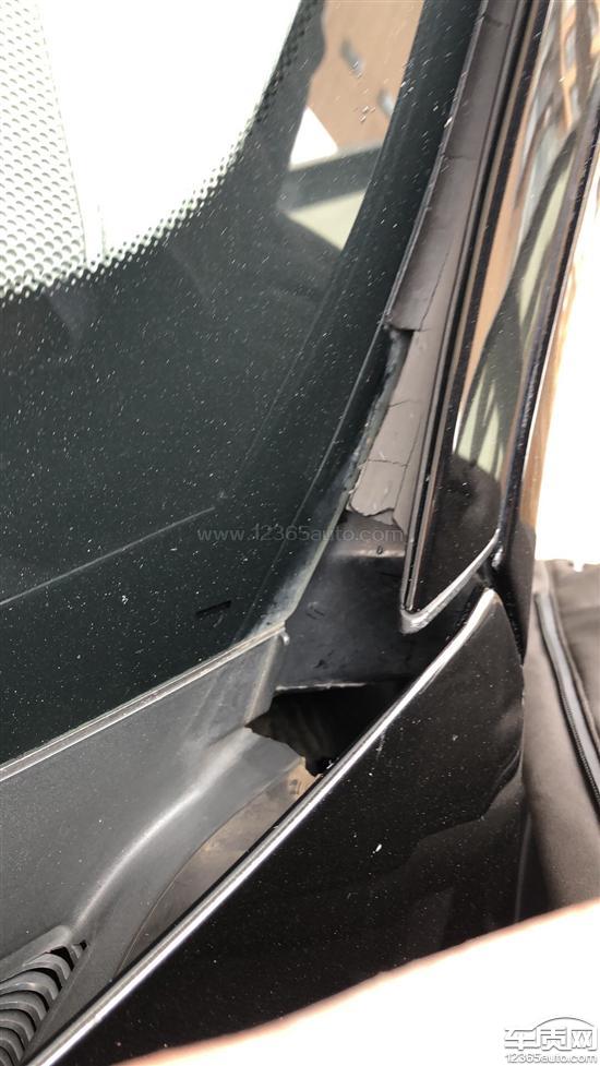 前风挡玻璃胶条老化严重出现窟窿,经销商以出保为由拒绝免费更换,仪表盘内有飞虫。