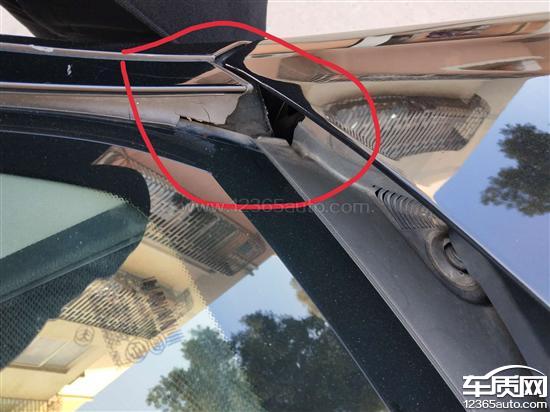 这是我刚发现几天的事情,就车开着感觉噪音很大,还有啸声,那天洗车时候一看,车挡风玻璃两边全是老化了,都有很大两个洞,蚊虫树叶全部都掉进去了,这么贵的车,怎么会出现这样的情况呢,很明显就是质量问题,请一定给解决,拜托了!