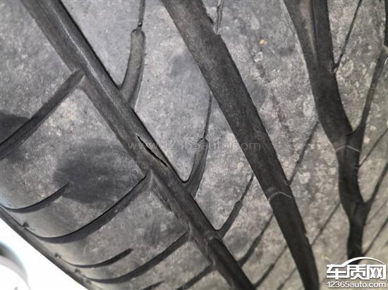 购车1年5个月,行驶2.3万公里,今天扣轮胎石子的时候,发现原厂的普利司通轮胎开裂,裂口长3~4厘米左右。
