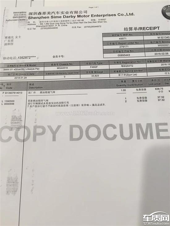 投诉编号:【366967】 投诉时间:2019-04-20 10:36 投诉品牌:华晨宝马 投诉车系:宝马X1 投诉车型:2016款 sDrive18Li 尊享型