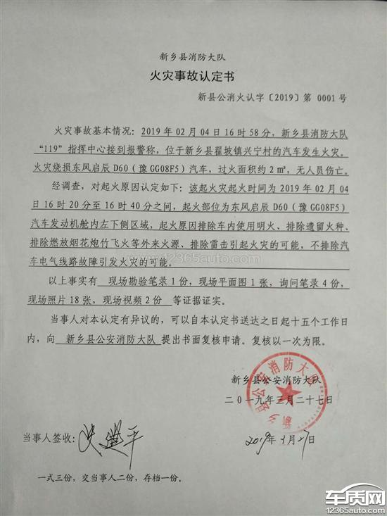 启辰D60电路故障导致停放中自燃2019-03-15车型:2019款 1.6L XV CVT 智联豪华版 国V