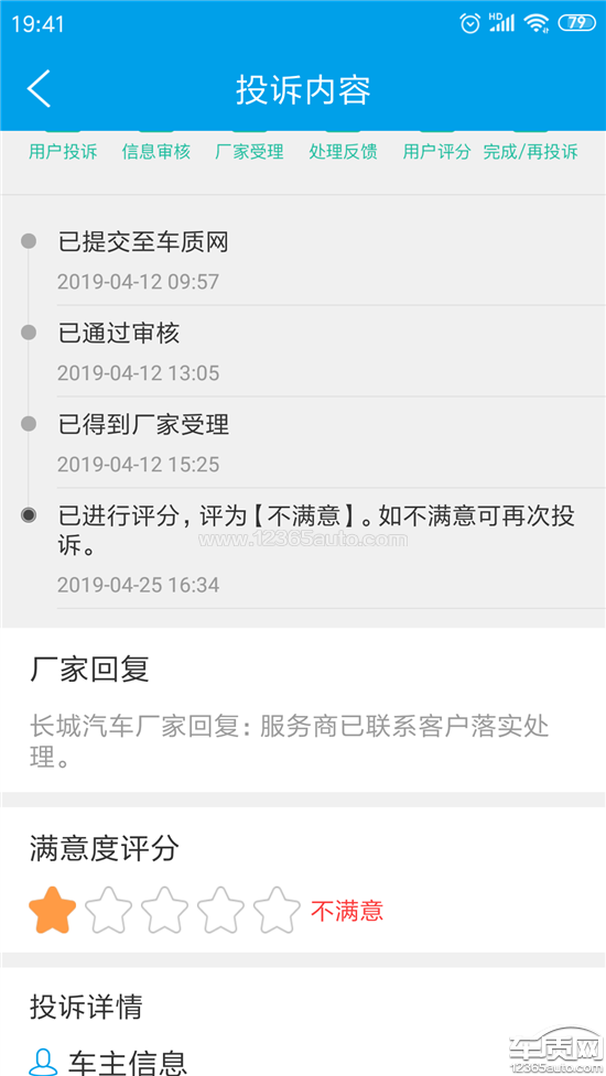 投诉编号:【368357】 投诉时间:2019-04-25 19:48 投诉品牌:长城汽车 投诉车系:哈弗H4 投诉车型:2018款 1.5T 风尚型 蓝标