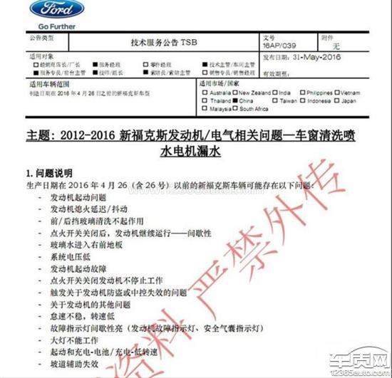 2018年12月13日在苏州市购卖的2012款福特福克斯1.6自动风尚型两厢汽车,2018年12月14日转移至安徽阜阳入户。2018年12月20日发现汽车发动机启动怠速不稳,车身抖动,熄火延迟。去阜阳福特4S店,4S店修车师傅说是车身控制模块(BCM)出现问题,要换BCM、线束、雨刮喷水电机总成,再加上工时费差不多要小一万元。后来我在网上查询了其他客户投诉的问题和我这是一样的,是汽车挡风玻璃清洗泵的线束插接器渗漏玻璃水,通过线束渗漏到BCM模块上造成的腐蚀,这个属于汽车设计缺陷问题。虽然车已过了质保期,但是还是希望福特方面给客户一个合理的答复!