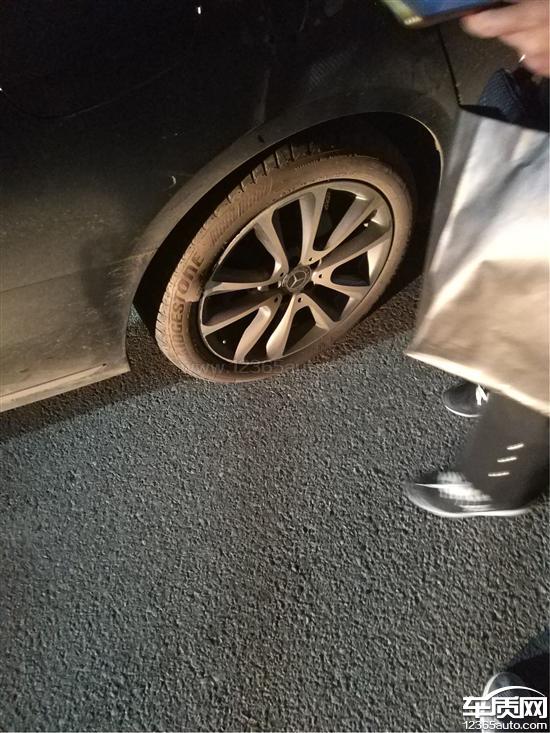 北京奔驰E级等红绿灯时突然爆胎,存在安全隐患。