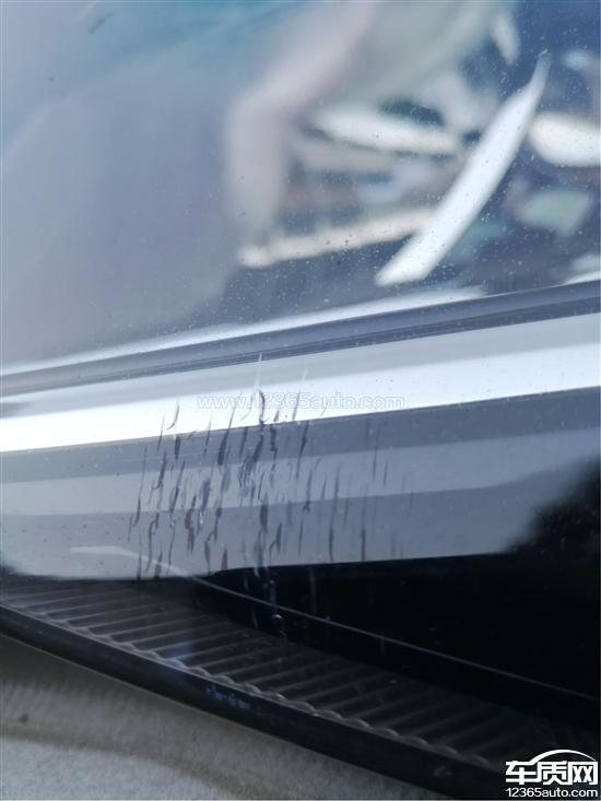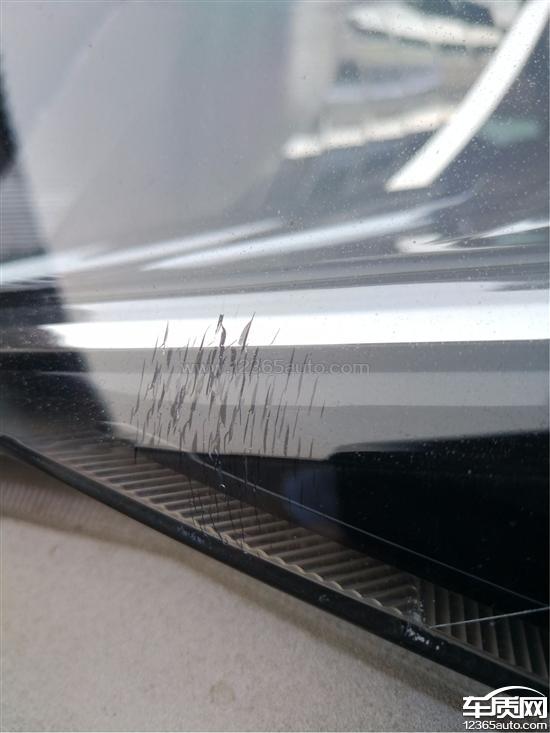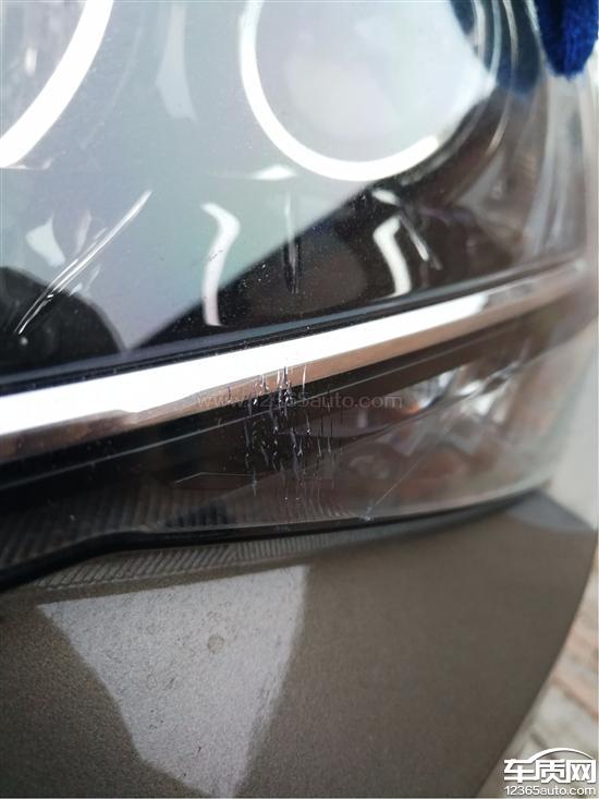 左前大灯灯罩出现裂纹,灯罩表面光滑平整,没有发现磕碰迹象。