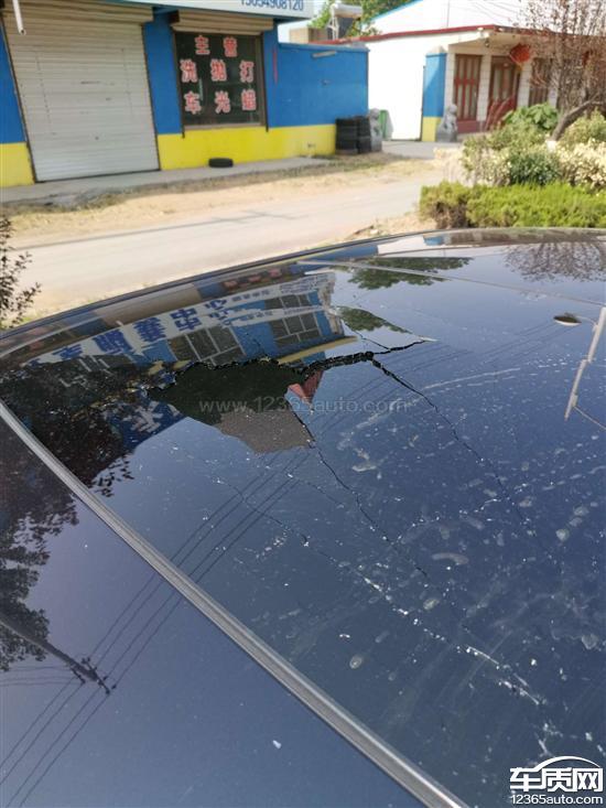 我在行车过程中,突然听到一声巨响,停车查看发现天窗碎裂,没有被东西砸到,但是去了当地4S店,他们不承认是质量问题,而说是被硬物击碎的。