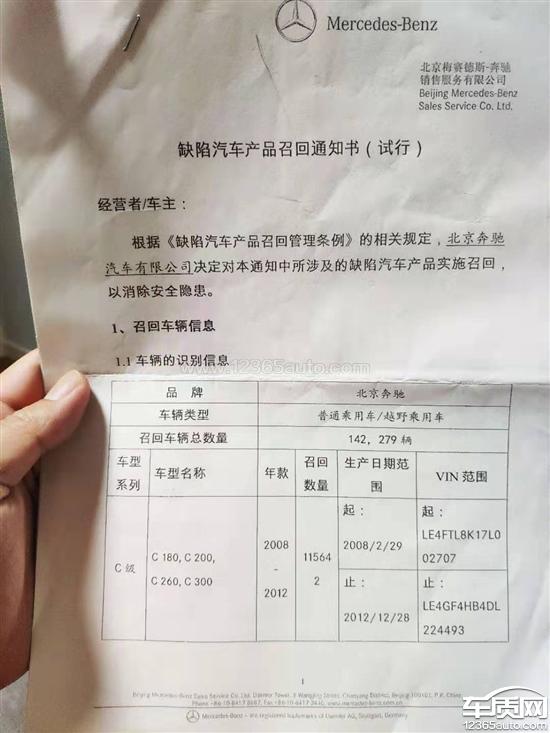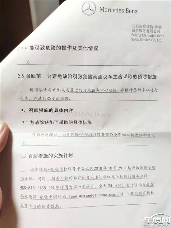 图片中已显示奔驰召回通知,过去已经两年,一直以各种理由推脱不予召回处理,对于用户的安全毫不在意。