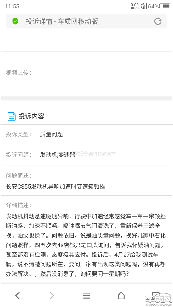 投诉编号:【388541】 投诉时间:2019-07-14 12:26 投诉品牌:长安汽车 投诉车系:长安CS55 投诉车型:2017款 1.5T 手动 炫动型