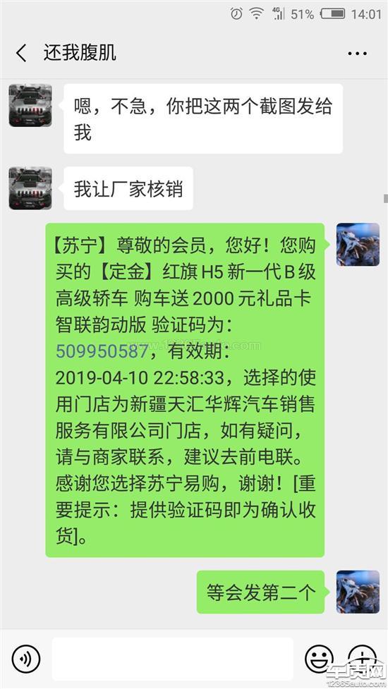 我在2019.3月打算购买红旗H5,恰好红旗厂家联合苏宁易购搞活动,9.9元的券送2000元购物卡,我购买了9.9元的券,也按照4S店销售人员的指导将发票之类的信息都发给了苏宁客服,并把其他需要核销的资料发给了4S店销售人员,销售答复会让市场部的人核销。等到五月份再次登陆苏宁易购,提示未及时核销,不能给发放2000元购物卡。与销售人员多次沟通,至今没有给补偿措施。这是赤裸裸的欺诈行为,是苏宁与你们红旗厂家一起欺骗人的鬼把戏!我买红旗H5是出于爱国情怀,没想到败在了你们的促销服务上,让人寒心、愤怒,我需要补偿!